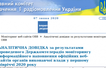 Держкомтелерадіо провів моніторинг інформаційного наповнення у першому півріччі 2020 року офіційних веб-сайтів центральних та місцевих органів виконавчої влади.