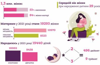 У 2021 році 19,3 тис. жінок відчули радість материнства, з яких 57% – мешканки міст. Народилося 19,4 тис. дітей, з них 10 тис. хлопчиків і 9,4 тис. дівчаток. Серед немовлят – 496 двійнят і 9 трійнят. За останній рік порівняно з попереднім збільшилася частка дітей, які народили матері у віці 30-39 років, – з 39% до 41% відповідно.