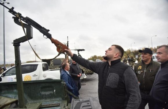 Заступник голови Львівської обласної ради Юрій Холод ознайомлюється зі зброєю мобільних вогневих груп
