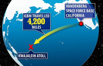 Під час навчань МБР пройде 4200 миль від бази до атола Кваджалейн, невеликого острова в північній частині Тихого океану, що забере близько 22 хвилин.