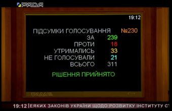 За закон №4535 "Про внесення змін до деяких законів України щодо розвитку інституту старост" у парламенті проголосували 239 народних депутатів.