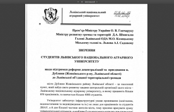Університет забезпечує інфраструктурні умови проживання (освітлення, водопостачання та водовідведення та ін.) не лише для працівників та студентів ЛНАУ, а й для більшої частини жителів міста, тому просимо врахувати думку університетської спільноти, а, особливо, її студентського осередку при проведенні реформи децентралізації.