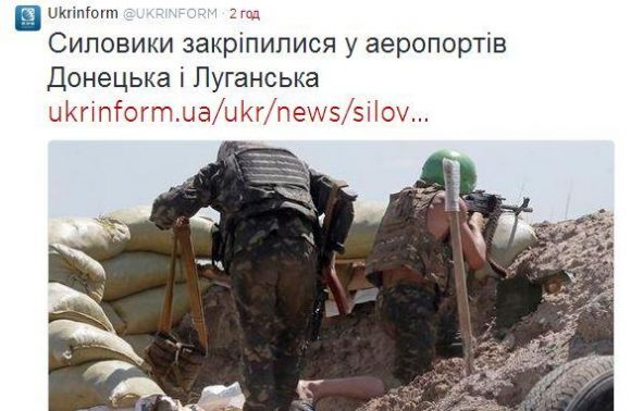 «Сьогодні вночі в результаті активних дій підрозділів Збройних сил України, які залучені до антитерористичної операції розблоковано донецький аеропорт та летовище і введено додаткові сили. Таким чином було розширено зону контролю навколо цього стратегічного об’єкту.