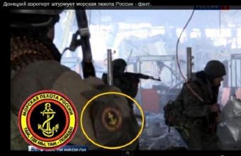 «Телеканал «Россия» проколовся не по-дитячому – такої підстави самі собі вони ще не влаштовували. Відеорепортаж з донецького аеропорту, де останніми днями йдуть важкі й запеклі бої, був проведений в кращих пропагандистської традиціях – «хороші ополченці2 викурювали з території порту «поганих кіборгів» – «фашистів». І тут облом – в кадр крупним планом потрапляє нарукавний шеврон, на якому красується логотип морської піхоти Росії.