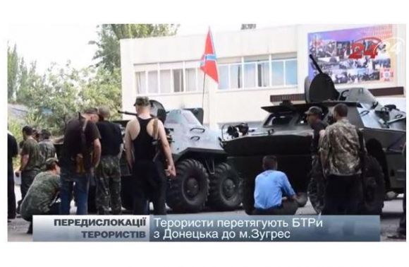 «Телеканал новин «24» опублікував сьогодні, 10 серпня, відео, за його словами, передислокації терористів до міста Зугрес, яке супроводив такою інформацією: «Бойовики звозять бронетранспортери з Донецька, їдучи колоною. До слова, прес-центр АТО повідомив, що вночі українська армія знищила чимало техніки терористів».