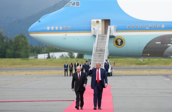 Трамп і Путін майже одночасно зійшли зі своїх літаків на об'єднаній базі Елмендорф-Річардсон в Анкориджі. Вони спустилися сходами та потиснули один одному руки, широко посміхаючись, перш ніж пройти червоною доріжкою, щоб позувати для фотографій на сцені.
