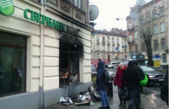 У річницю розстрілу Небесної сотні у Львові було спалено приміщення трьох філій банків з російським капіталом.