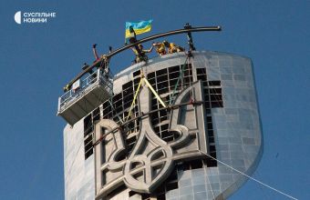 У Києві підняли тризуб на монумент «Батьківщина-мати».