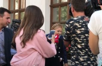 Лідер «Батьківщини» Юлія Тимошенко вийшла до журналістів під готелем «Леополіс» у Львові, де наразі нібито перебуває екс-глава Одеської ОДА Міхеіл Саакашвілі.