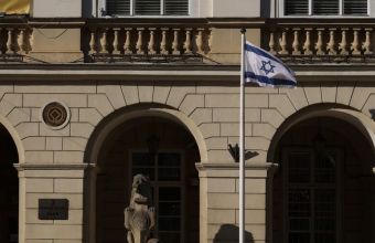 На флагштоку перед Львівською міською радою вивісили прапор Ізраїлю на знак солідарності з ізраїльським народом, який напередодні зазнав атаки терористичного угруповання ХАМАС.