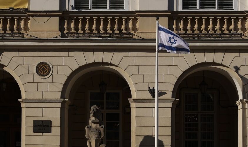 У четвертий день агресії ХАМАС біля мерії Львова вивісили прапор Ізраїлю