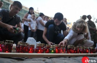 Кількасот львів'ян зібралися на площі перед міською Ратушею Львова, щоб вшанувати спільною молитвою та хвилиною мовчання пам'ять загиблих під Іловайськом. Зі собою принесли запалені лампадки та квіти.