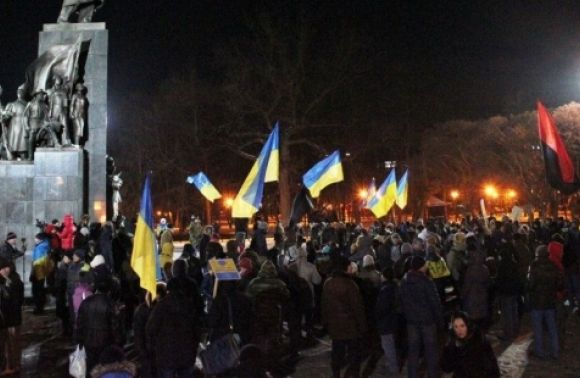 Близько двох сотень активістів харківського Євромайдану пройшлися містом у супроводі футбольних фанів від квиткових кас стадіону «Металіст» до пам'ятника Тарасу Шевченку. Під час ходи правопорушень не було – колону супроводжувала міліція, а співробітники ДАІ допомагали людям переходити дорогу.
