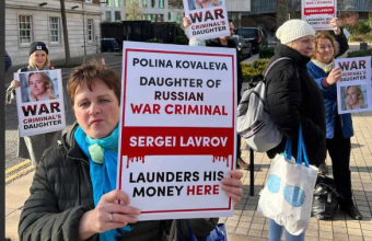 У Лондоні люди з гаслами прийшли до будинку доньки міністра закордонних справ Росії Сергія Лаврова.
