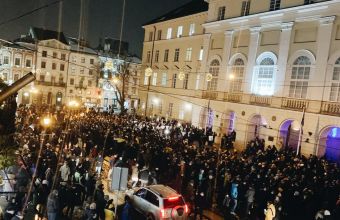 У Львові на площі Ринок зібралися люди на підтримку екслідера одеського „Правого сектору“ Сергія Стерненка, якого 23 лютого засудили до 7 років і 3 місяців ув’язнення.