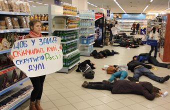 «Група львівських мам і громадські активісти руху «Бойкот російських товарів» закликали львів’ян не купувати дитячі речі, вироблені в Росії. Бо таким чином, на їхню думку, люди підтримують російського виробника і допомагають Росії фінансувати її армію. Акція відбулась біля одного з дитячих магазинів. За словами адміністратора крамниці, попит на товари російського виробника дуже низький у Львові».