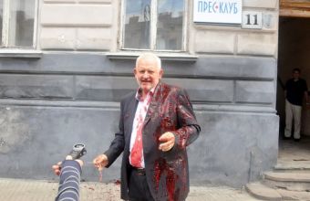 Двоє представників громадської організації «Правий сектор. Захід» підбігли до політика після того, як він вийшов на вулицю після завершення прес-конференції Львівському прес-клубі й облили його кров’ю з пластикових пляшок. Вони також вигукували «Приймальні «Опозиційного блоку» у Львові не буде, їдьте в ДНР!» і «Опозиційний блок вбиває українців!». Про це повідомили сьогодні, 10 липня, в інтернет-виданні «Українська правда». Натомість в агенції Укрінформ додають: