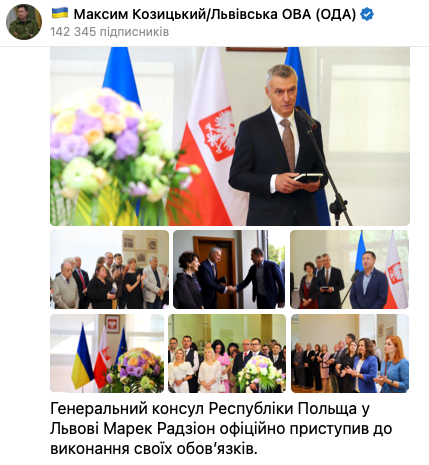 "Дипломатична місія – це завжди велика відповідальність. Але розпочинати її в країні, яка вже четвертий рік живе у стані повномасштабної війни, – це ще й акт сміливості, - написав Максим Козицький. - Пане Мареку, щиро бажаю вам сили, мудрих рішень й гідних людей поруч. Сподіваюся, на нас чекають і щирі розмови, і плідна співпраця, і глибше осмислення спільної історії, щоб ми дивилися в одному напрямі й розвивалися разом.