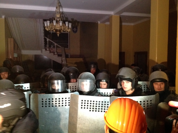 Повідомляючи про це сьогодні, 19 лютого, кореспондент «Радіо Свобода» додає: «Арсенал зі зброєю опечатують. Оскільки було запалено барикади, щоб унеможливити виїзд БТР-ів, вогонь перекинувся на контрольно-пропускний пункт і ворота, а потім і на казарми. Другий поверх будівлі згорів. Протестувальникам не вдається загасити вогонь. Раніше у Львові захопили будівлі облдержадміністрації, прокуратури і управління міліції.