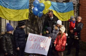 Діти поклали до зачинених воріт дитячі іграшки, а паперові «журавлики миру» полетіли на подвір’я установи. Учасники акції запалили лампадки і свічки біля приміщення російського консульства.