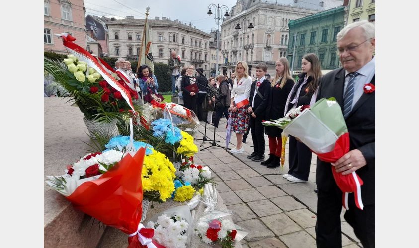 Про це повідомила пресслужба ЛМР, пише DailyLviv.com. Сьогодні, 3 травня, Польща відзначає 234-ту річницю від дня проголошення першої Конституції країни. З цієї нагоди на площі Міцкевича у Львові відбулись урочистості за участі представників Генерального консульства, польської громади, міської і обласної влади, військових. Учасники заходу поклали квіти до підніжжя пам’ятника польському поетові Адаму Міцкевичу.