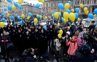 «У флешмобі «Побажання Україні» на площі перед пам’ятником Тарасові Шевченку у Львові взяли участи близько п’ятдесяти людей. Кожен із присутніх мав змогу взяти у волонтерів жовту або ж блакитну кульку і написати на ній побажання Україні. Окрім того, учасники акції під звуки пісні Тараса Петриненка «Україно» взялись за рук та утворили «ланцюг єдності», – повідомили сьогодні, 22 січня, в інформаційній агенції «УНН», де також опублікували світлини з місця події.