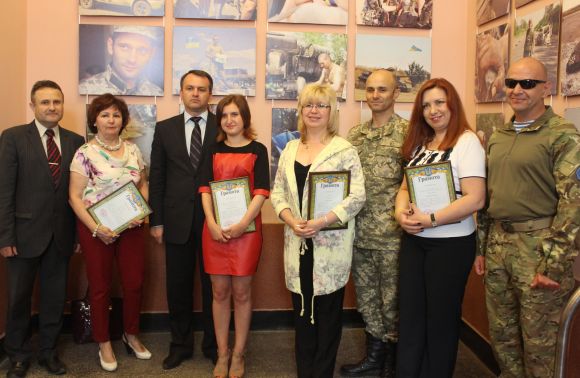 Грамотами керівника антитерористичної операції на території Донецької та Луганської областей, генерал-лейтенанта Ігоря Колесника, нагороджено п’ятьох волонтерів – Ірину Дзьобу, Ірину Яремко, Валерія Веремчука, Олега Колясу та Ігоря Грабінського. На жаль, не всі змогли прийти на церемонію. Дехто з них на даний час перебуває на Сході України – повезли чергову партію речей, які вкрай потрібні солдатам.