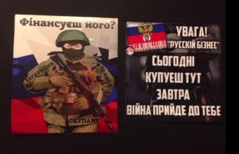 «У Львові більше пів сотні невідомих патріотів із правих організацій провели акцію протесту проти російського бізнесу. Відділення «ВТБ банку», «Сбербанку» та «Альфа-банку» також магазини «Центробувь» та «Sela», розташовані у центральній частині міста, заклеїли наліпками. На більшості наклейок були написи «За твої гроші вбивають наших захисників», «Не допомагаєш нашій армії, то хоча б не фінансуй ворожу» та «Не фінансуй окупанта», – повідомили сьогодні, 7 лютого, в інтернет-виданні «Інформатор».