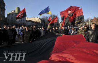 При цьому учасники акції несли великий червоно-чорний прапор, а також плакат із зображенням лідера ОУН Р.Шухевича. У заході взяли участь близько п'ятдесяти людей, переважно – похилого віку. Про це повідомили сьогодні, 7 грудня, в інформаційній агенції «УНН», де також опублікували світлини з місця події.