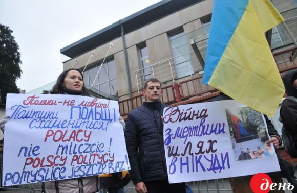 Відтак, близько півсотні активістів прийшли до консульства Польщі з плакатами, на яких закликали поляків схаменутися, не нищити українські пам'ятки й не нападати на українців. На думку активістів, до таких дій поляків спонукають ультраправі політики-популісти, які хочуть заробити собі заявами боротися проти українців та українського політичних балів.