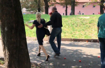 Акція під стінами Львівської ОДА закінчилася закиданням гнилих помідорів в Інну Іваничко з партії Медведчука «Українського вибору».