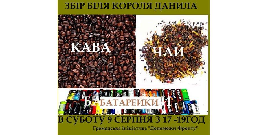 Громадський активіст Люба Возняк повідомляє, що в суботу, 9 серпня зі 17.00 до 19.00 біля пам’ятника королю Данилу у Львові традиційно збиратимуть необхідне українським військовикам. Цього разу – каву, чай і батарейки для ліхтариків. Активіст також пише: