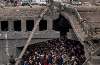 Люди ховаються під розбомбленим мостом в Ірпіні