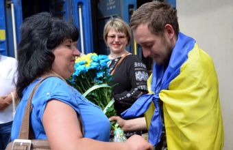 У Львові зустріли звільнених з полону національних гвардійців із прапорами й квітами