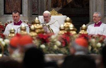 Ввечері, 24 грудня, Папа Франциск відслужив у базиліці Святого Петра у Ватикані нічну Різдвяну святу месу, під час якої виголосив проповідь.