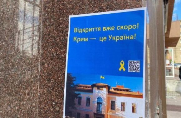 У Сімферополі активісти руху опору розклеїли листівки з написами «Відкриття вже скоро. Крим – це Україна» на будівлі, де розміщувалося представництво Президента України в АРК.