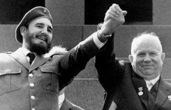 Комуністичні лідери Куби – Фідель Кастро та СРСР – Микита Хрущов на трибуні мавзолею Леніна на Красній площі в Москві, 1 травня 1963 року. На думку істориків, на совісті їхніх режимів — загибель мільйонів людей по всьому світу.