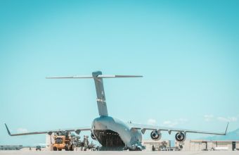Гаубиці завантажують на літак ВВС США C-17 Globemaster III на резервній авіабазі в Каліфорнії.