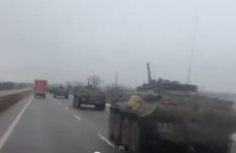 «Очевидці зафіксували величезну колону військової техніки, яка рухається з боку незаконно анексованого РФ Криму в напрямку материкової України. Про це свідчить відео колони.