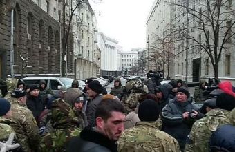 Бійці, які брали участь в Іловайській операції, влаштували акцію протесту під стінами будівлі Адміністрації Президента.