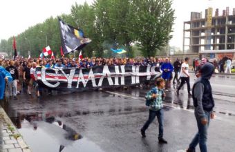 Фани тримали попереду колони кількаметровий транспарант з написом «Братство. Сумління».
