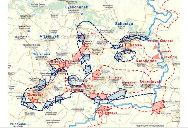 Прорив у цьому напрямку загрожує сполученню між основними силами «ДНР» і підрозділами, які захищаються біля Савур-Могили й перешкоджають нашим військам встановити повний контроль над висотою. Водночас українські війська здійснили атаки на Дмитрівку з боку Дякового з метою з’єднання оточеного там угруповання з основними силами
