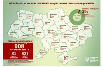 Три місяці залишилося у громад, аби декомунізувати щонайменше 908 міст і сіл. Дати пропозиції щодо нових чи повернення історичних назв населених пунктів, які пов’язані з комуністичним тоталітарним минулим, за законом вони мають до 21 листопада.