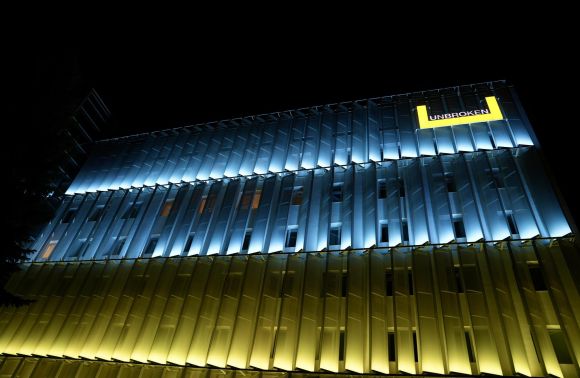 "Сьогодні Центр реабілітації UNBROKEN Ukraine засвітився кольорами українського прапора.
