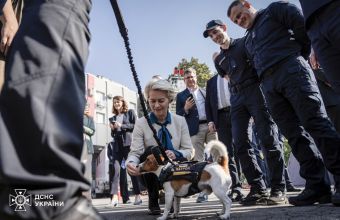 Крім того, Президентка ЄК ознайомилася зі зразками пожежної техніки та обладнанням, яке використовується для гасіння пожеж, в тому числі на об’єктах критичної інфраструктури, та поспілкувалася з рятувальниками щодо їхньої роботи під час ліквідації наслідків ворожих обстрілів.