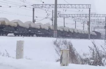 «14 лютого в мережі з’явилося відео з новою колоною російської техніки, яка направляється вбік українського кордону. Техніку перевозять залізницею. У колоні видно тентовані вантажівки і кілька десятків одиниць бронетехніки».