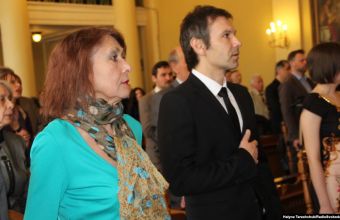 Святослав Вакарчук разом із мамою під час церемонії нагородження «Львів’янина року» і «Почесного громадянина міста». Львів, 1 травня 2015 року