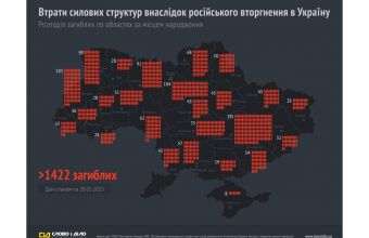 «Загинули 1422 українських військових, що брали участь в АТО. Таку статистику оприлюднив портал «Слово і діло», зібравши дані РНБО, Міністерства оборони України, СБУ, Державної прикордонної служби, прес-служб добровольчих батальйонів, «Правого Сектора» та відкритих джерел станом на 28 січня 2015 року.