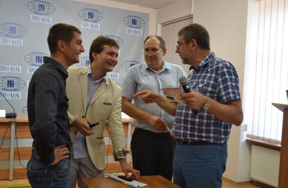 На фото: учасники перших дебатів - Валерій Веремчук, Дмитро Гудима, Яромир Свмагальський і модератор Роман Шостак.