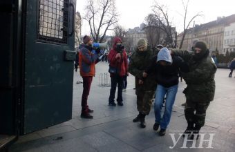 «Зелені чоловічки» помістили у Львові в автозак активістів (відео)